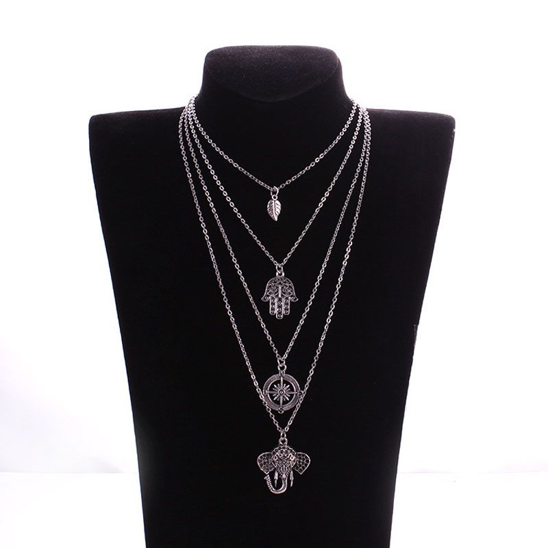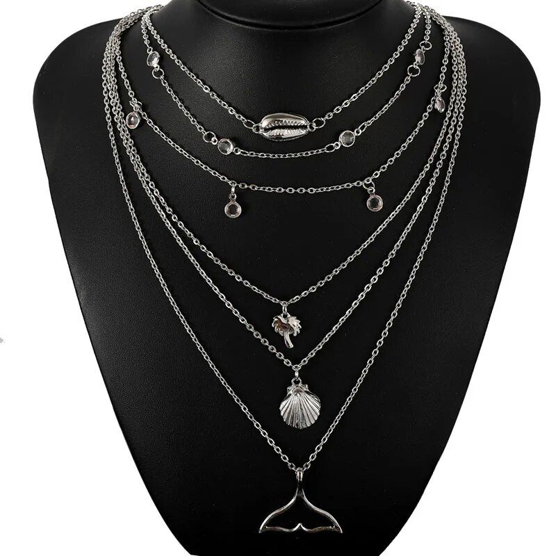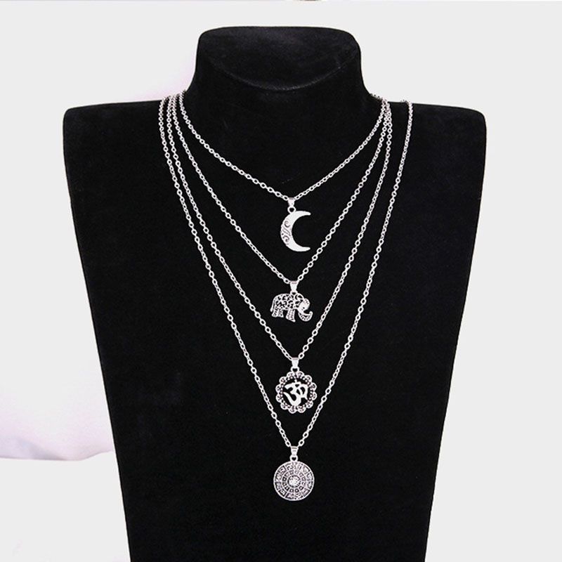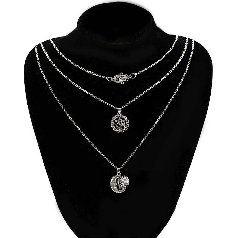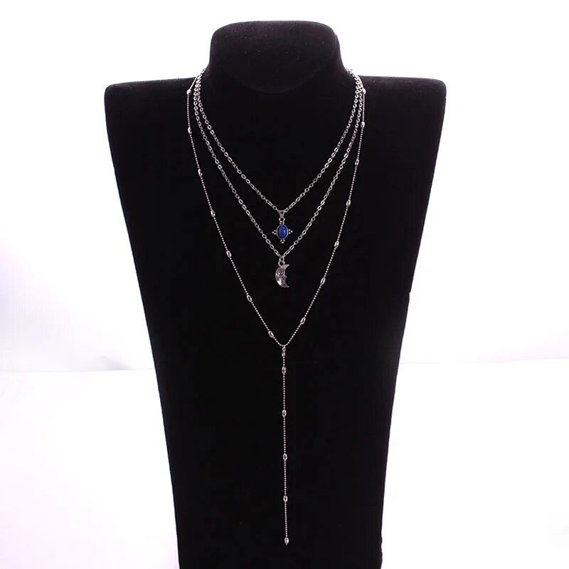 Boho Necklaces Women Vintage Gold Silver Color Chain Long Moon Multilayer Chain Choker Necklace Pendant Bohemian Choker Jewelry
